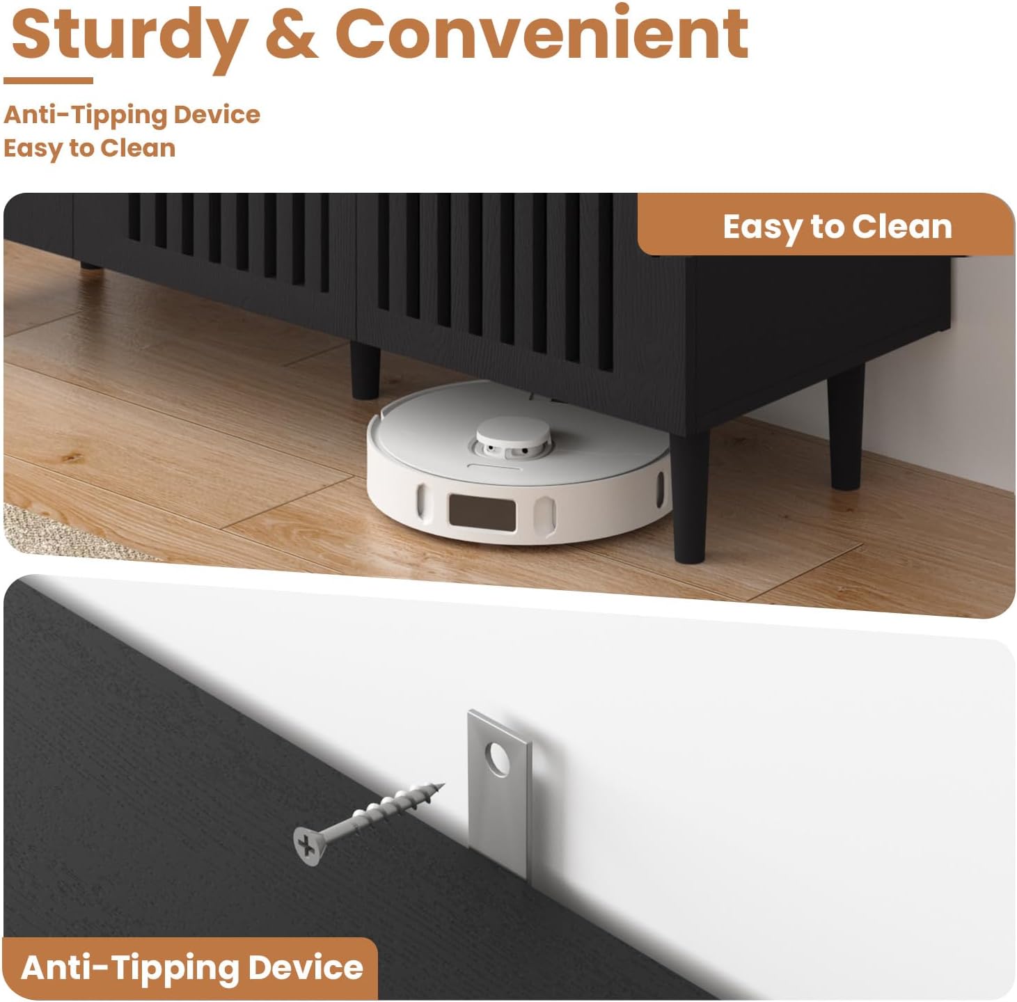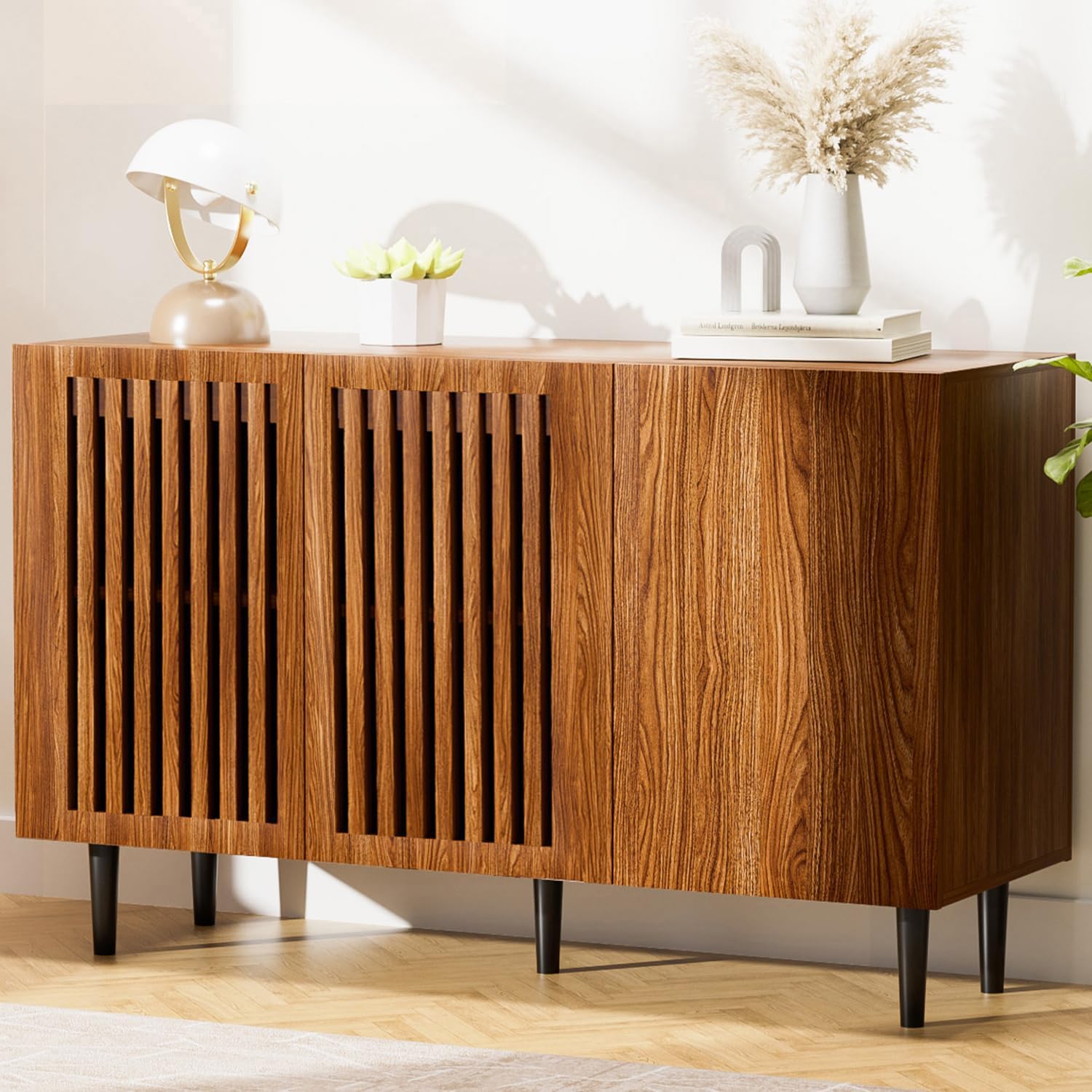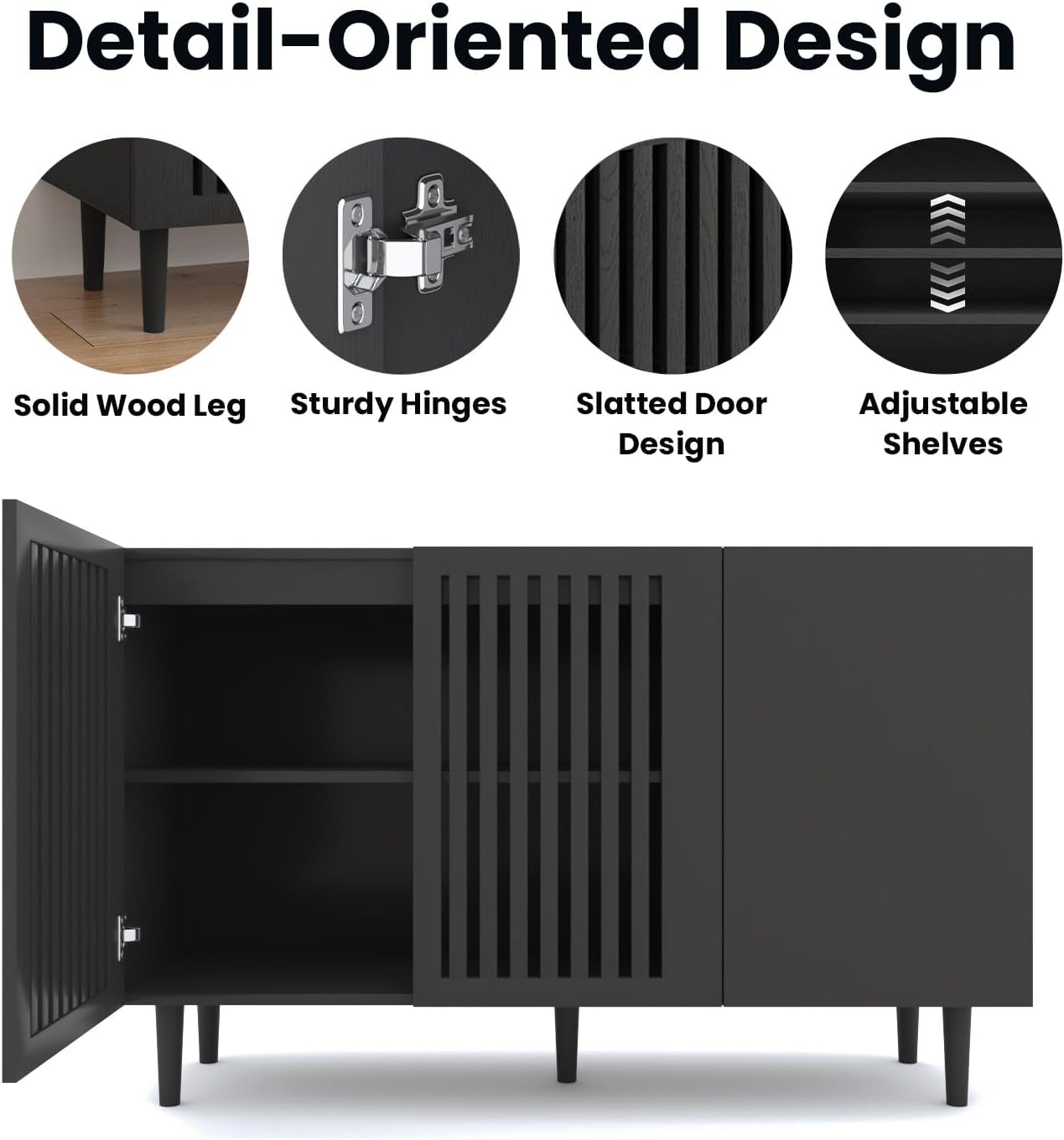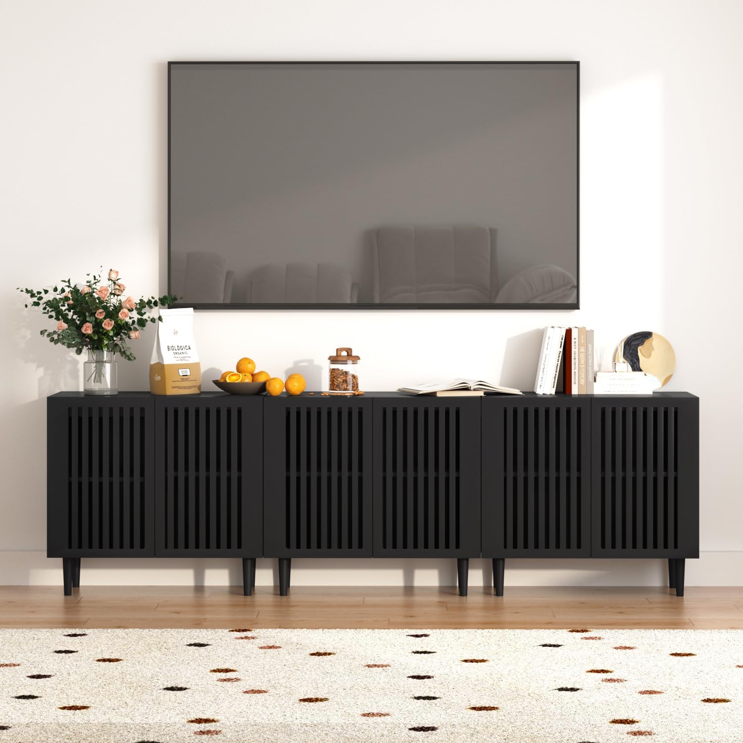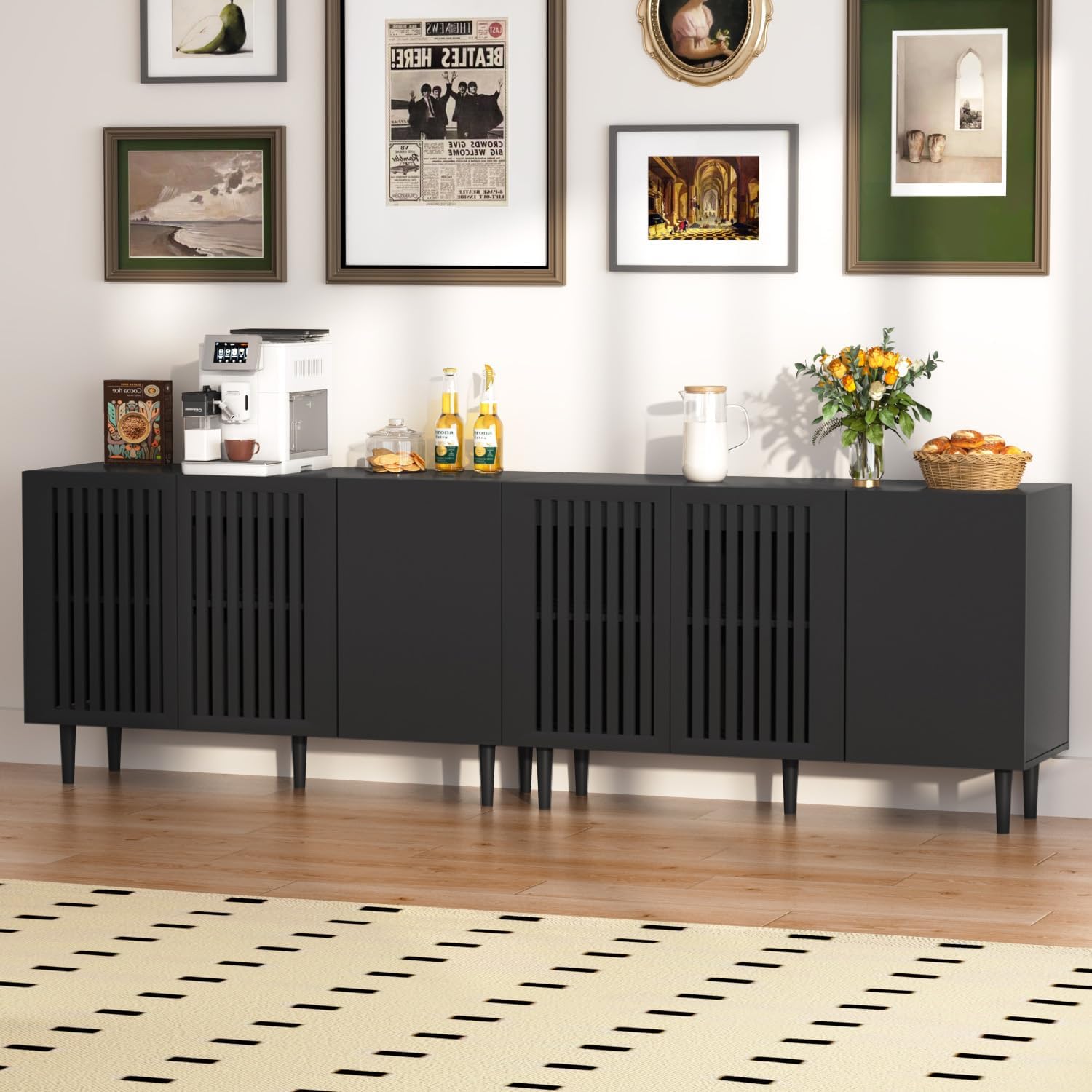 CHUWELL Modern Storage Cabinet, 94.4″ Buffet Cabinet with 6 DIY Doors and Adjustable Shelf, Sideboard Coffee Bar with Solid Wood Feet for Kitchen,Dining Room,Living Room,Black