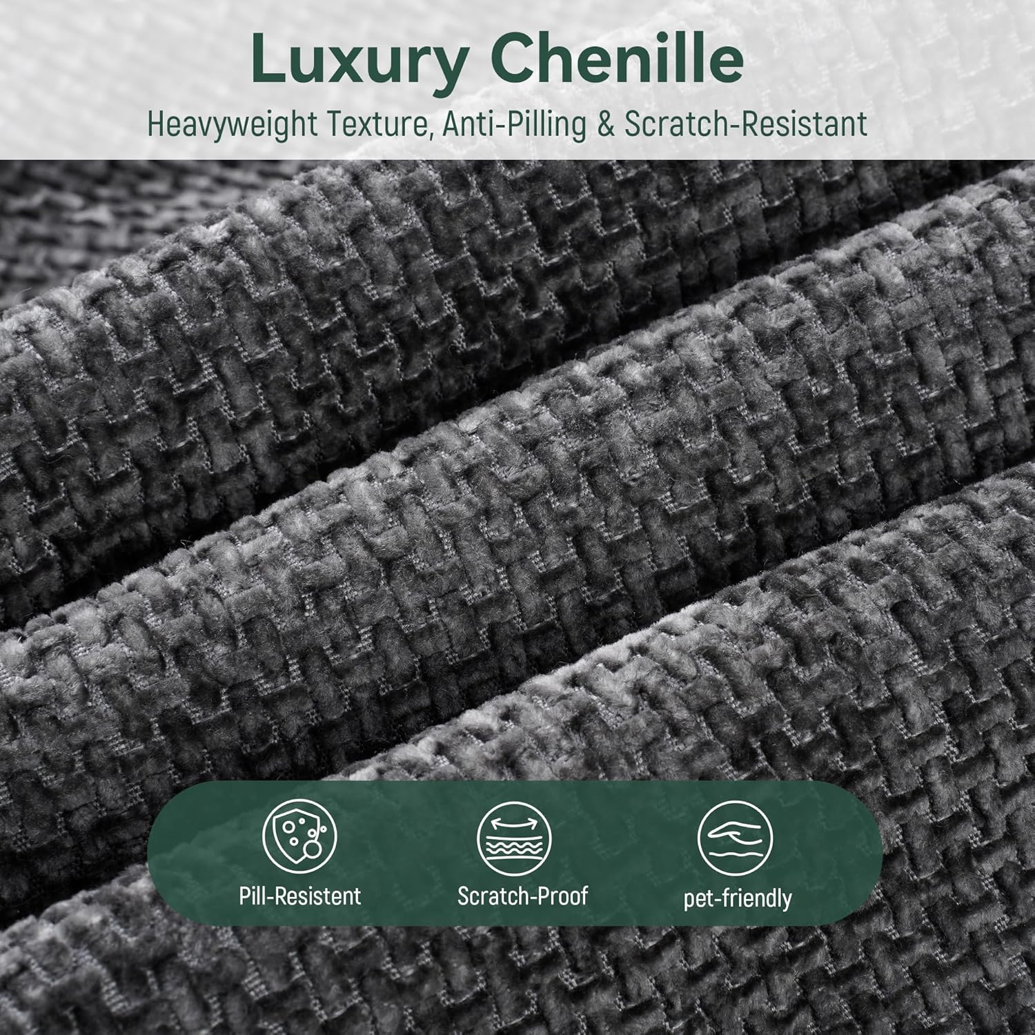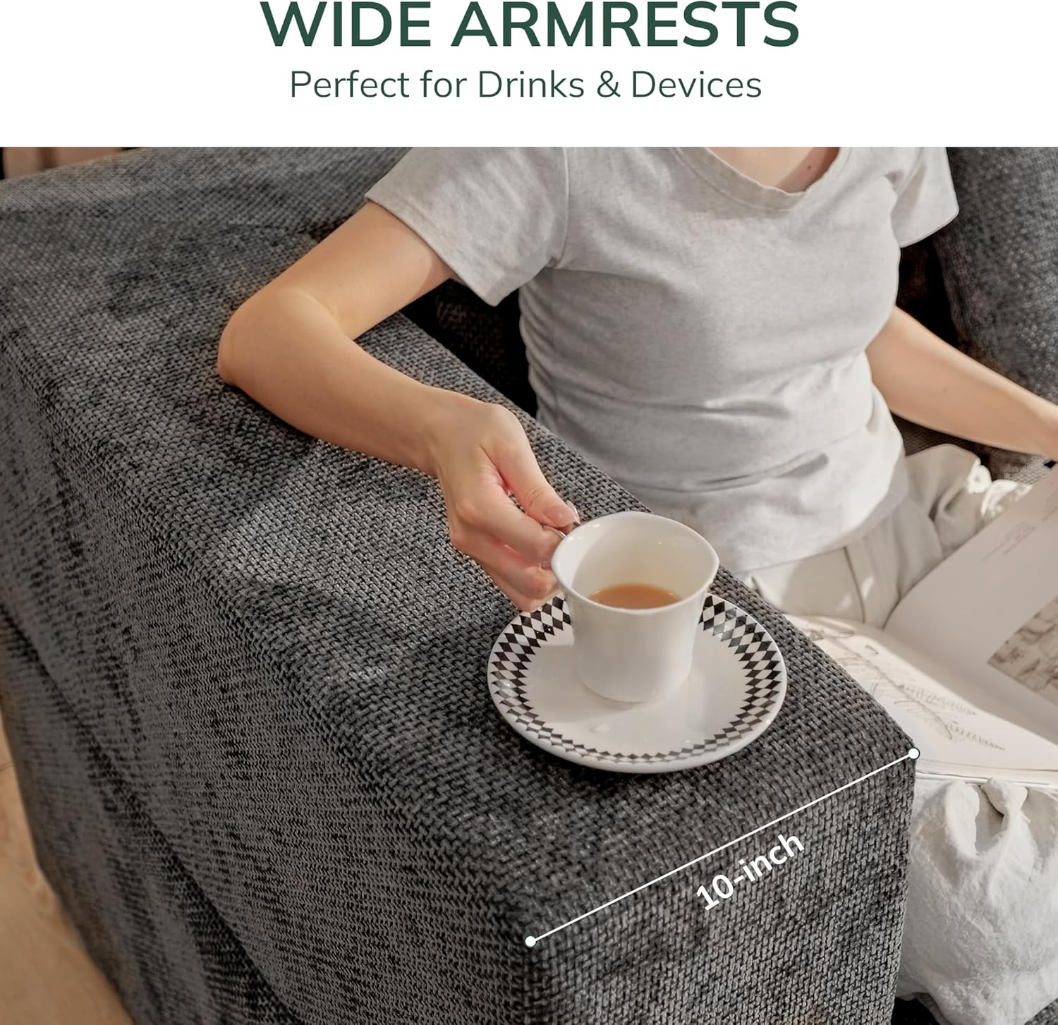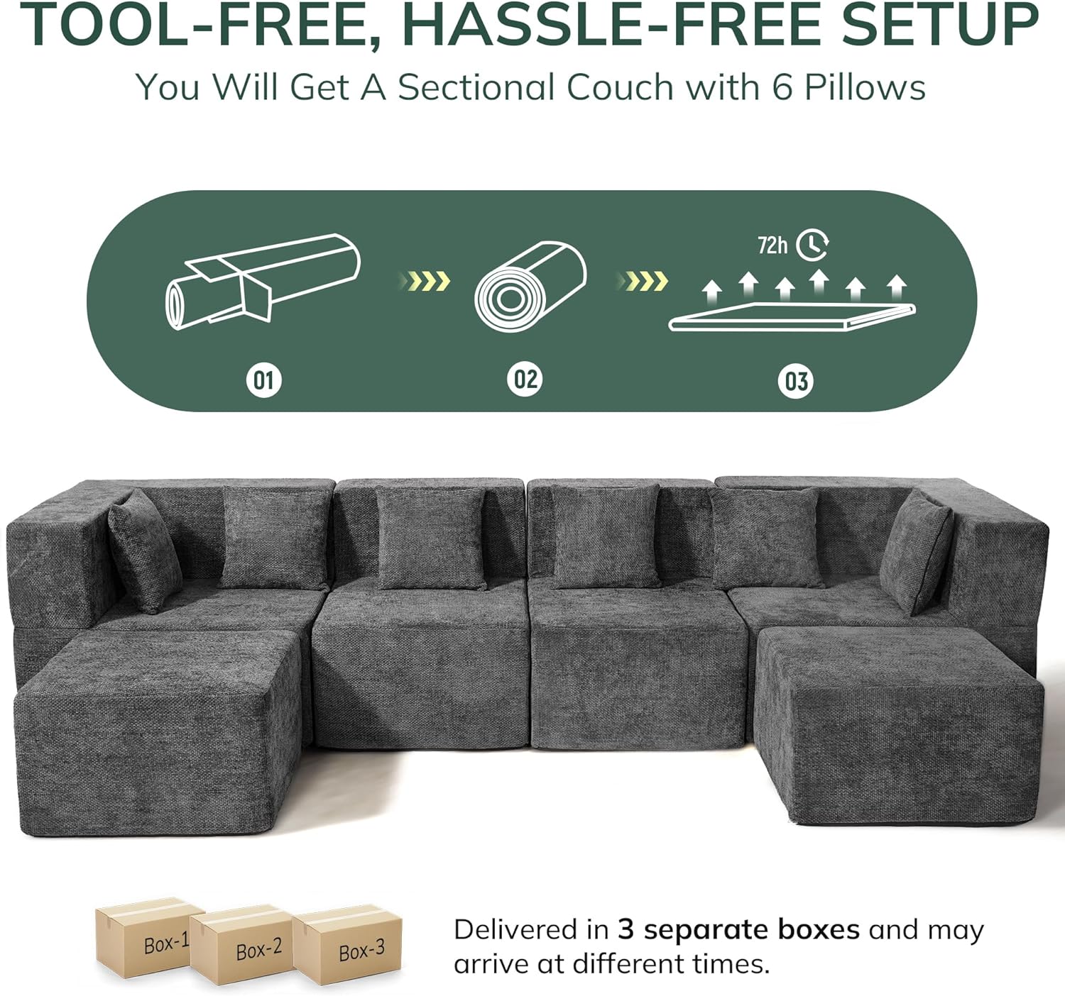 MONVANE Modular Sectional Cloud Couch for Living Room – 130” 4 Seater Convertible Chenille Couches Set with Ottoman, No Assembly Compression Sofas, Comfy Floor Sofa with Memory Foam, Dark Grey